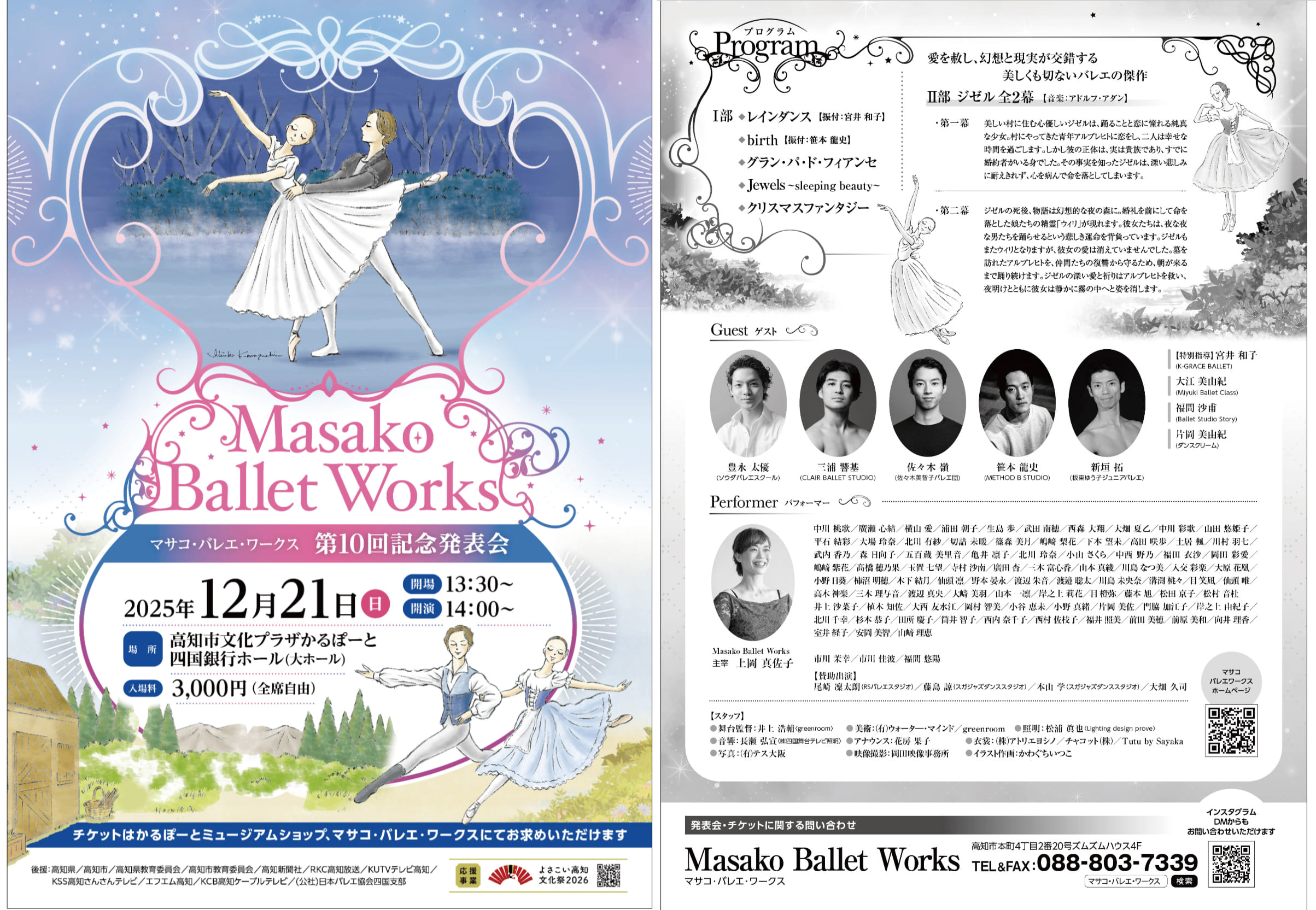 - Masako Ballet Works 第10回記念発表会を開催いたします。詳しくはインフォメーションをご覧ください。